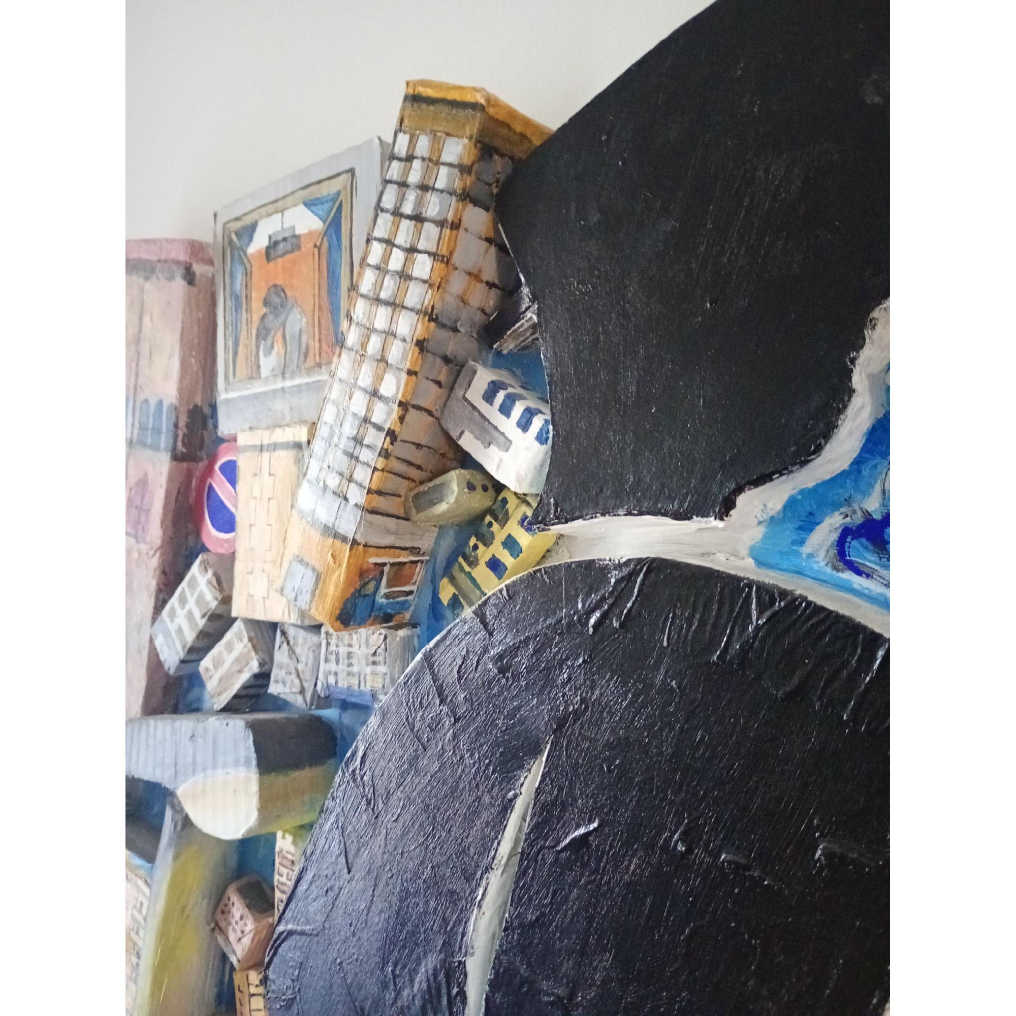 Tecnica mista, Cartone riciclato dipinto a mano incollato su tela, 2016
