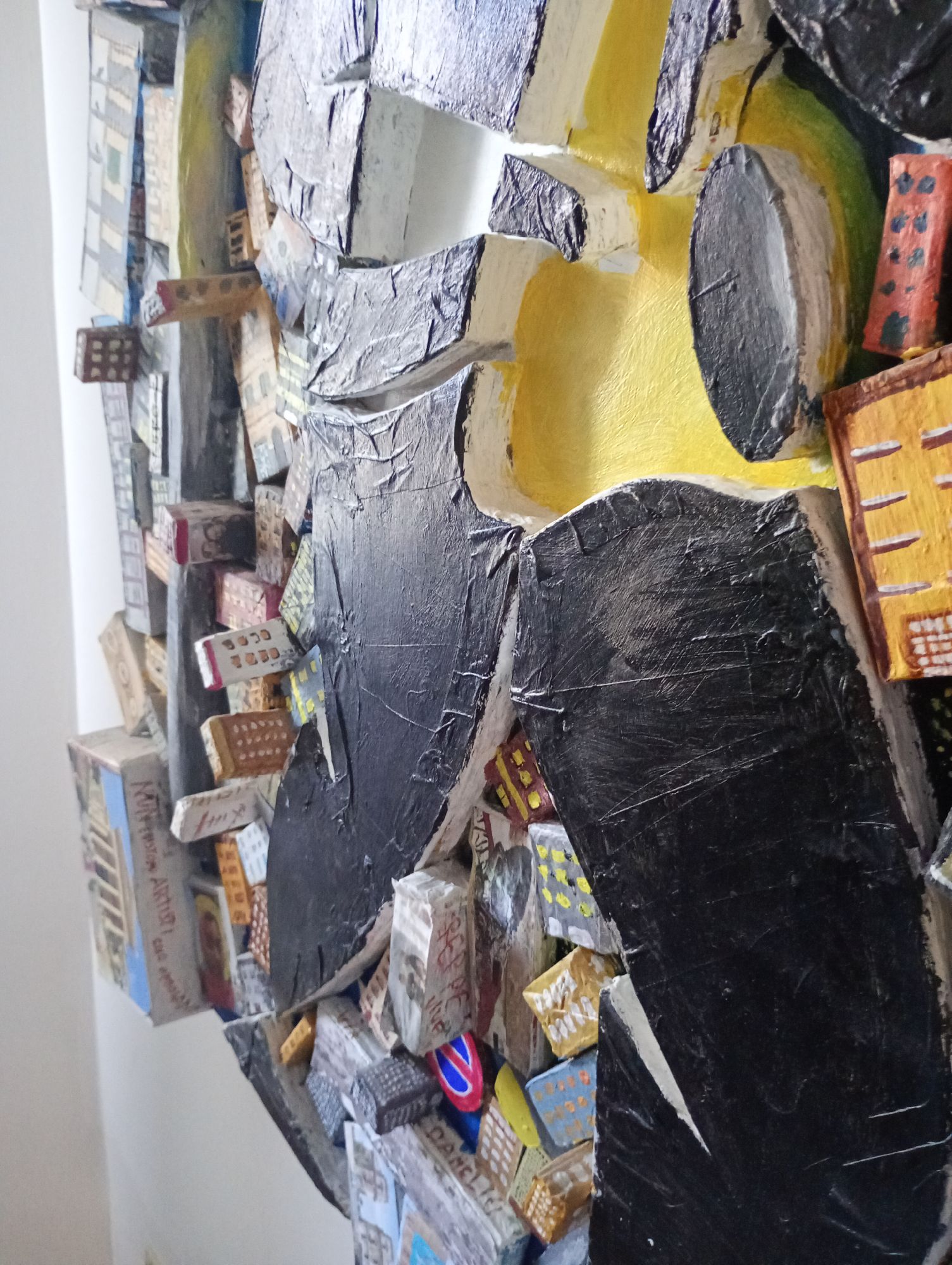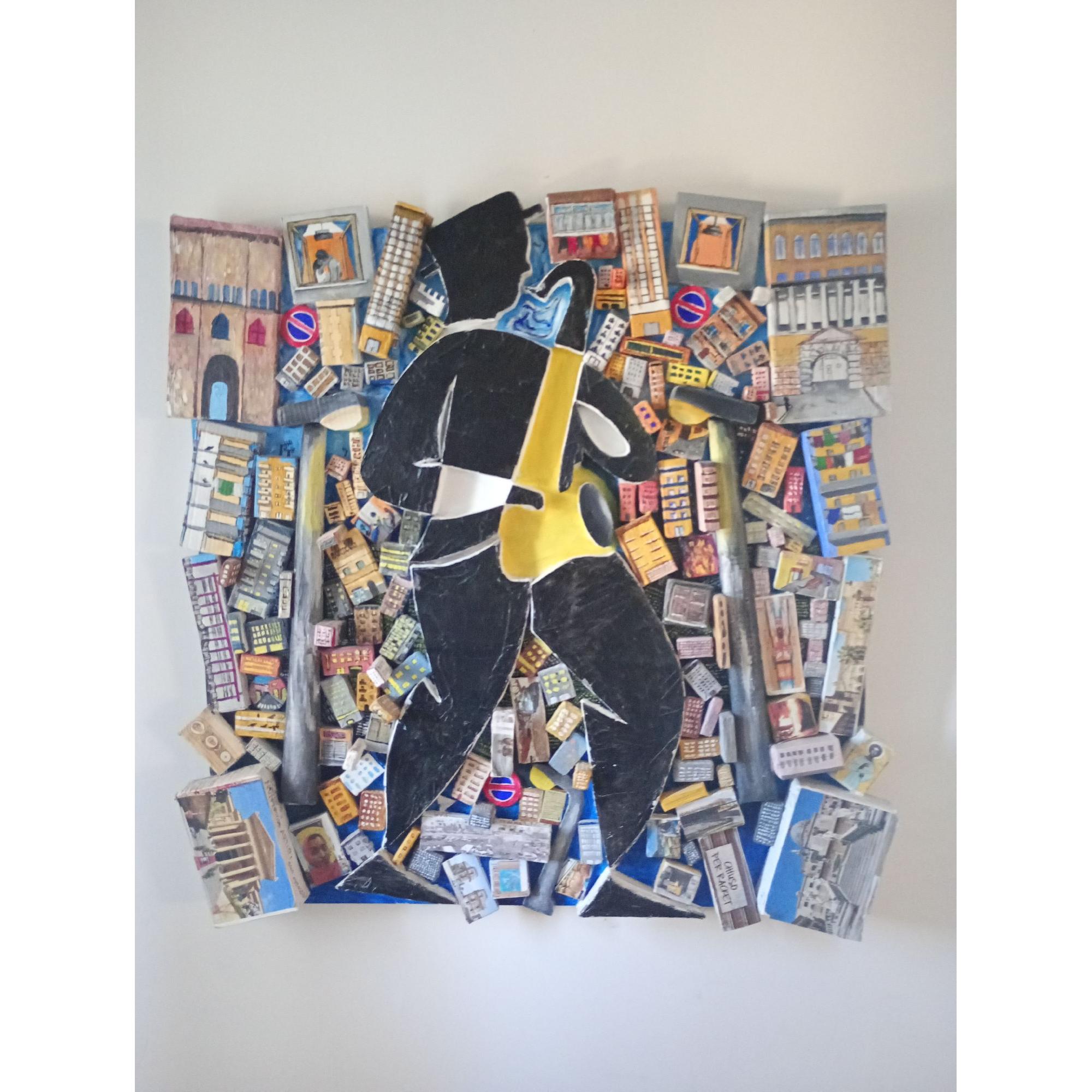 Opera dedicata a Peppino impastato. L'opera vuole raccontare alcune sfaccettature di Palermo attraverso le immagini e frasi scritte negli angoli nascosti del quadro non visibili dalla foto frontale ,per vedere l'opera si deve interagire con essa girare attorno ad essa per scoprire cosa si nasconde nei vicoli.