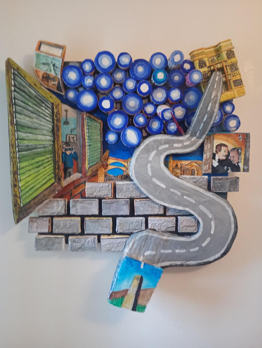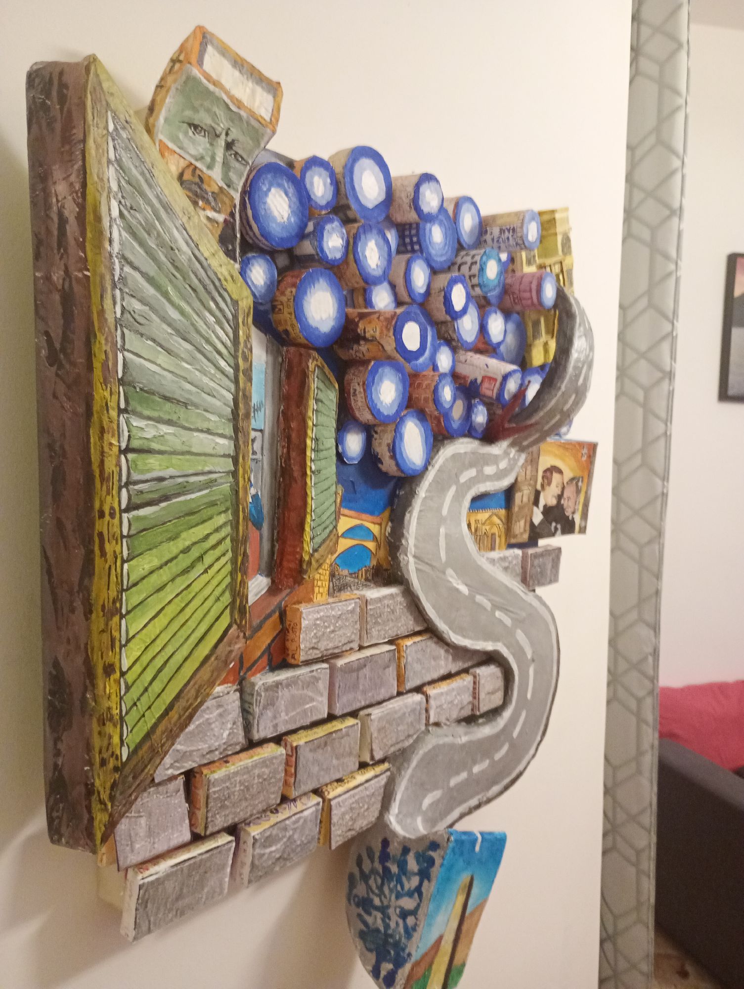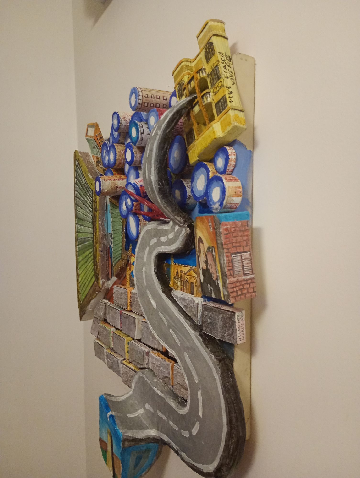 Opera particolare nella sua forma, con essa per poterla capire ed apprezzare bisogna interagire direttamente. I volumi di cui è composta nascondono le profondità anche esse dipinte o disegnate frasi nascoste ecc. Un opera tutta da scoprire ( 10 foto non bastano per descrivere la sua interezza )